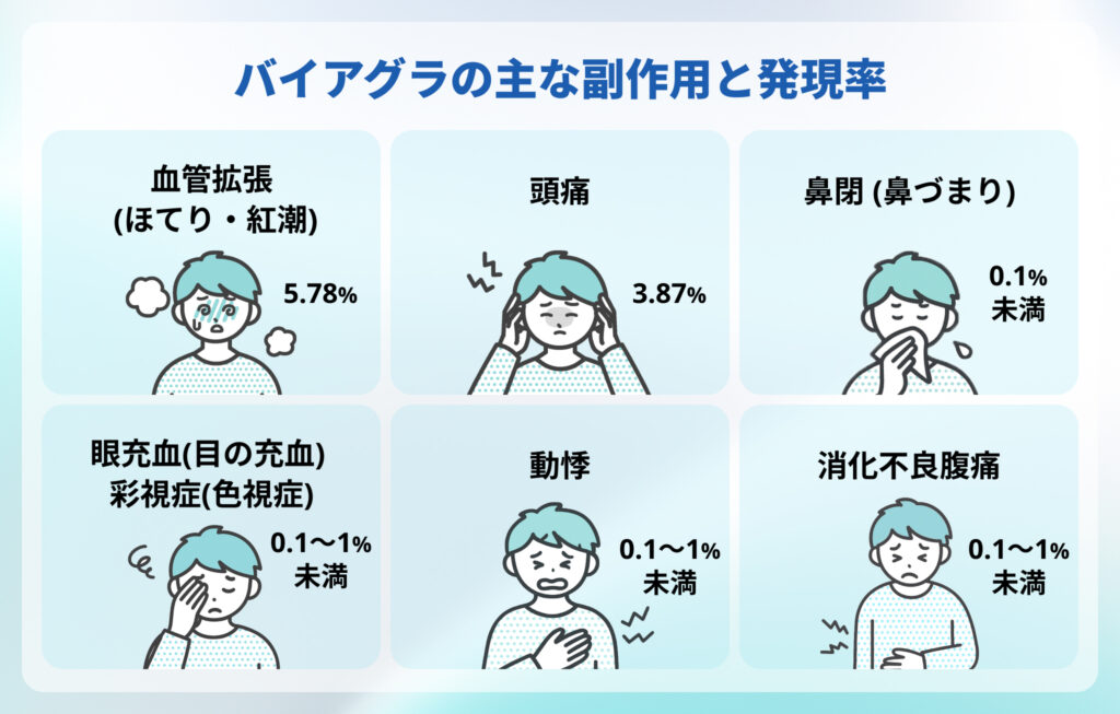バイアグラの主な副作用は以下の6つです。